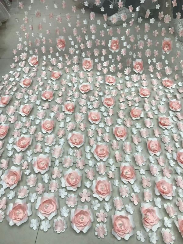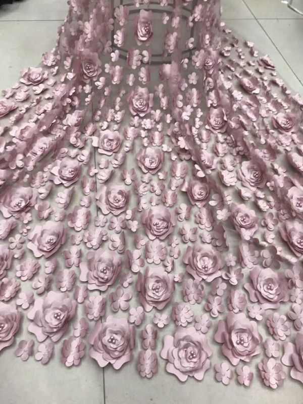Tejidos de encaje de flores bordados en 3D con cuentas, vestidos de noche de moda, vestidos de mallaMateriales naturales elegidos, libres de contaminación y de alta calidad