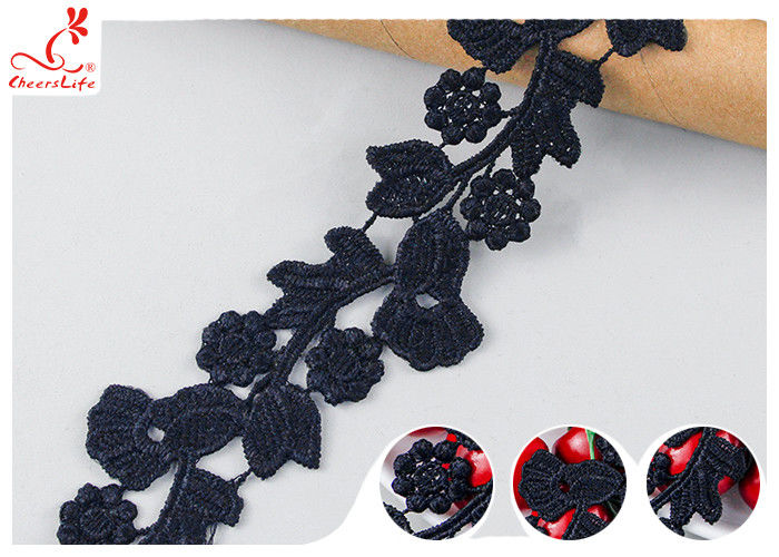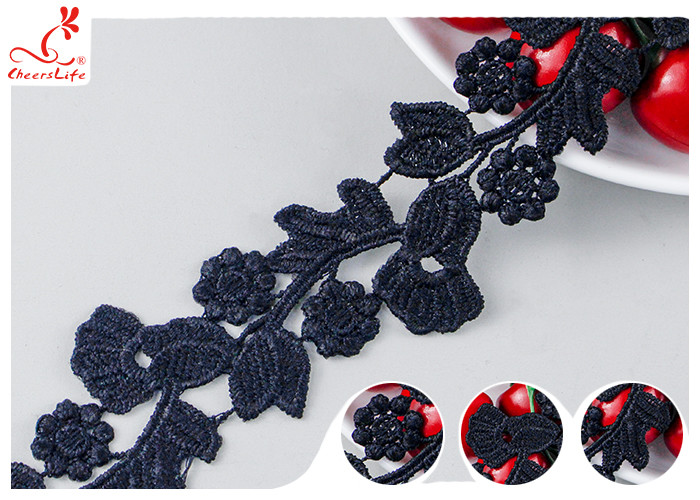 El ribete de encaje bordado floral negro de alta solidez del color soluble en agua muestra un color duradero, es adecuado para la producción en masa de fábrica de ropamuestreo en 3 días