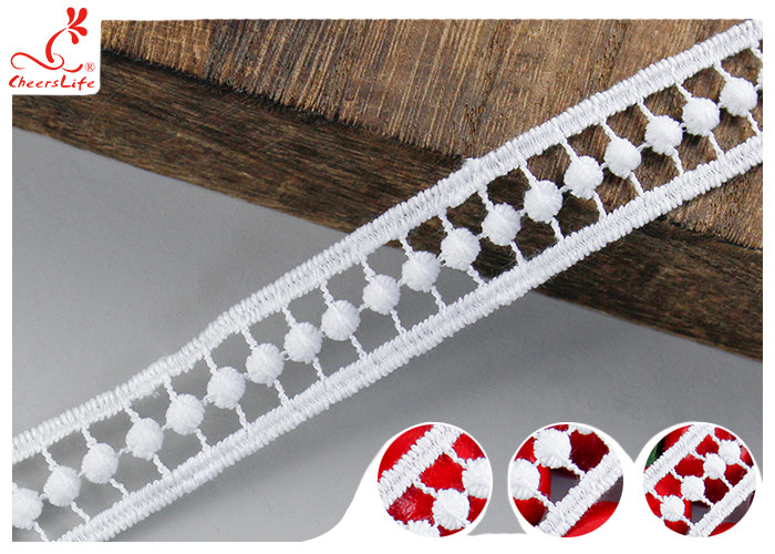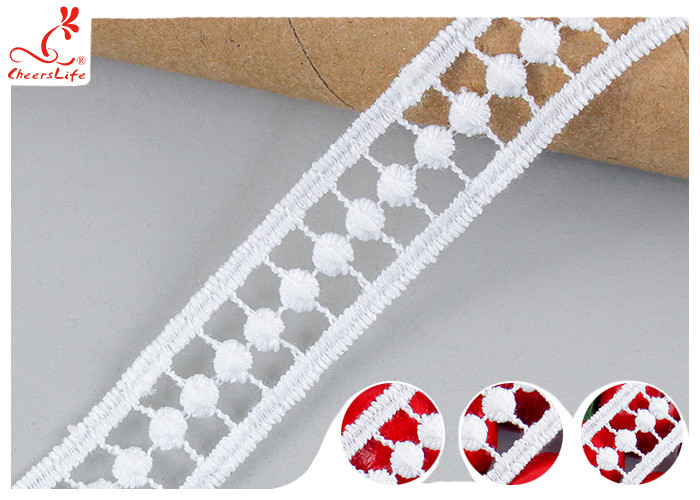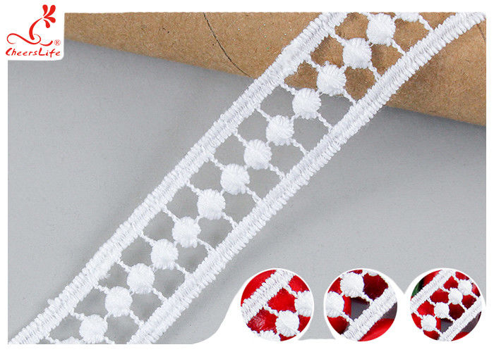 2 cm Blanco Guipure bordado de encaje con corte de seda de leche poli OEKO TEX 100