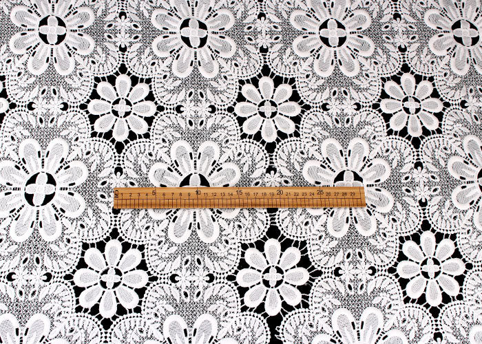 tela de encaje de algodón con flores bordadas de guipur teñida sin azo color DTM