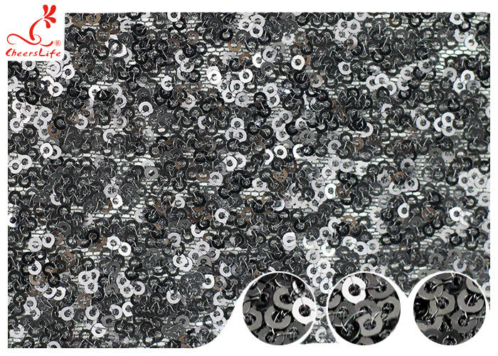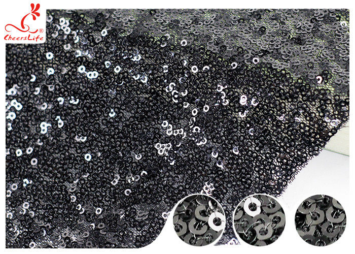 Tejido de malla de lentejuela negra bordada brillante para el vestido de noche de fiestaCompruebe 5 a 7 vecesantes de empacarInspección al 100%